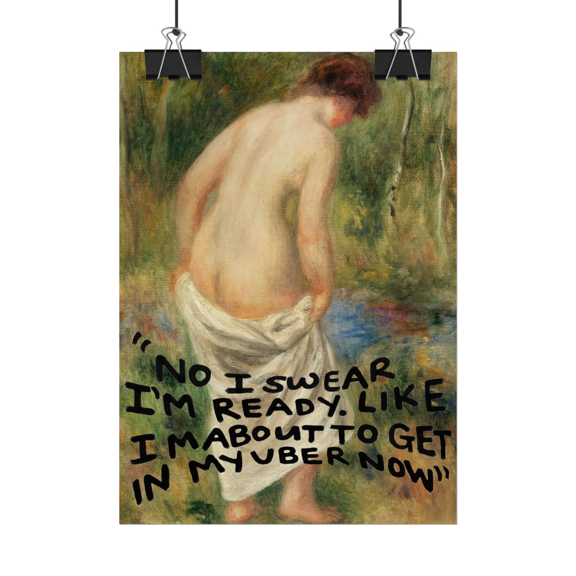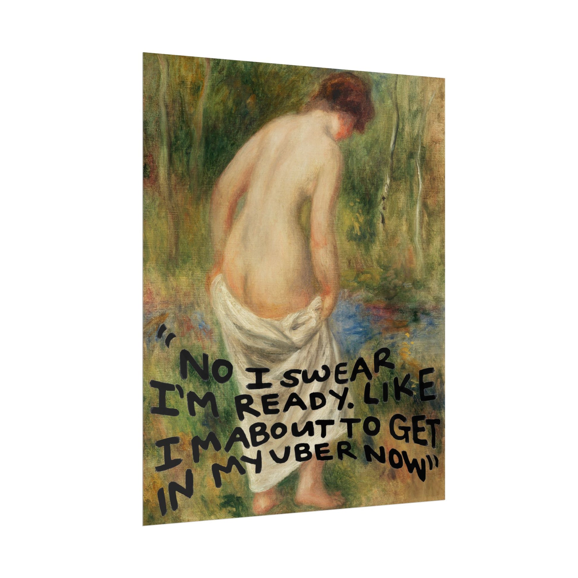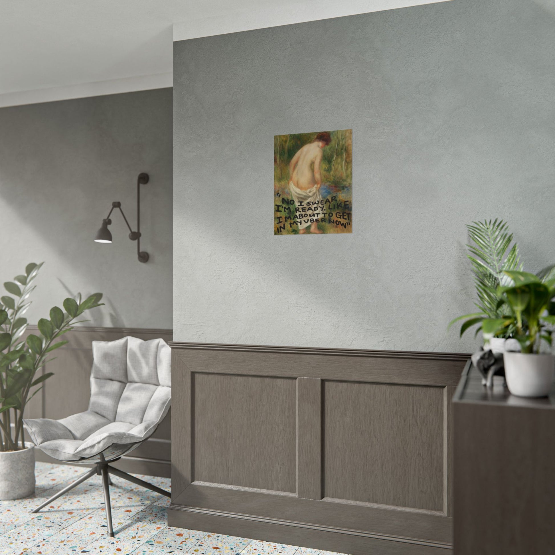 Woopsies brings together old-world charm with modern humor, overlaid on a classical painting backdrop. Perfect for chronic procrastinators and girls who are somehow always running late getting ready. Seamless addition to a gallery wall, pairing with various home décor aesthetics. Add some funny, witty energy to your space with the Woopsies poster.