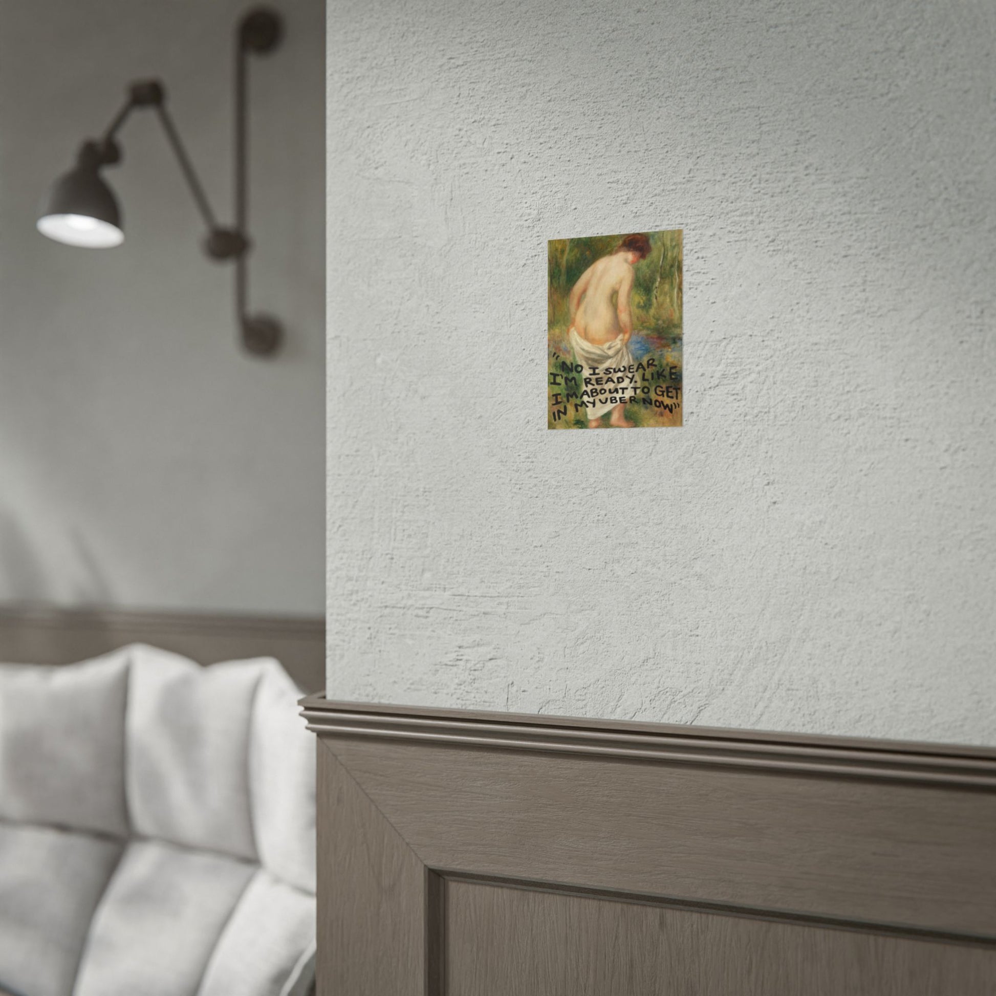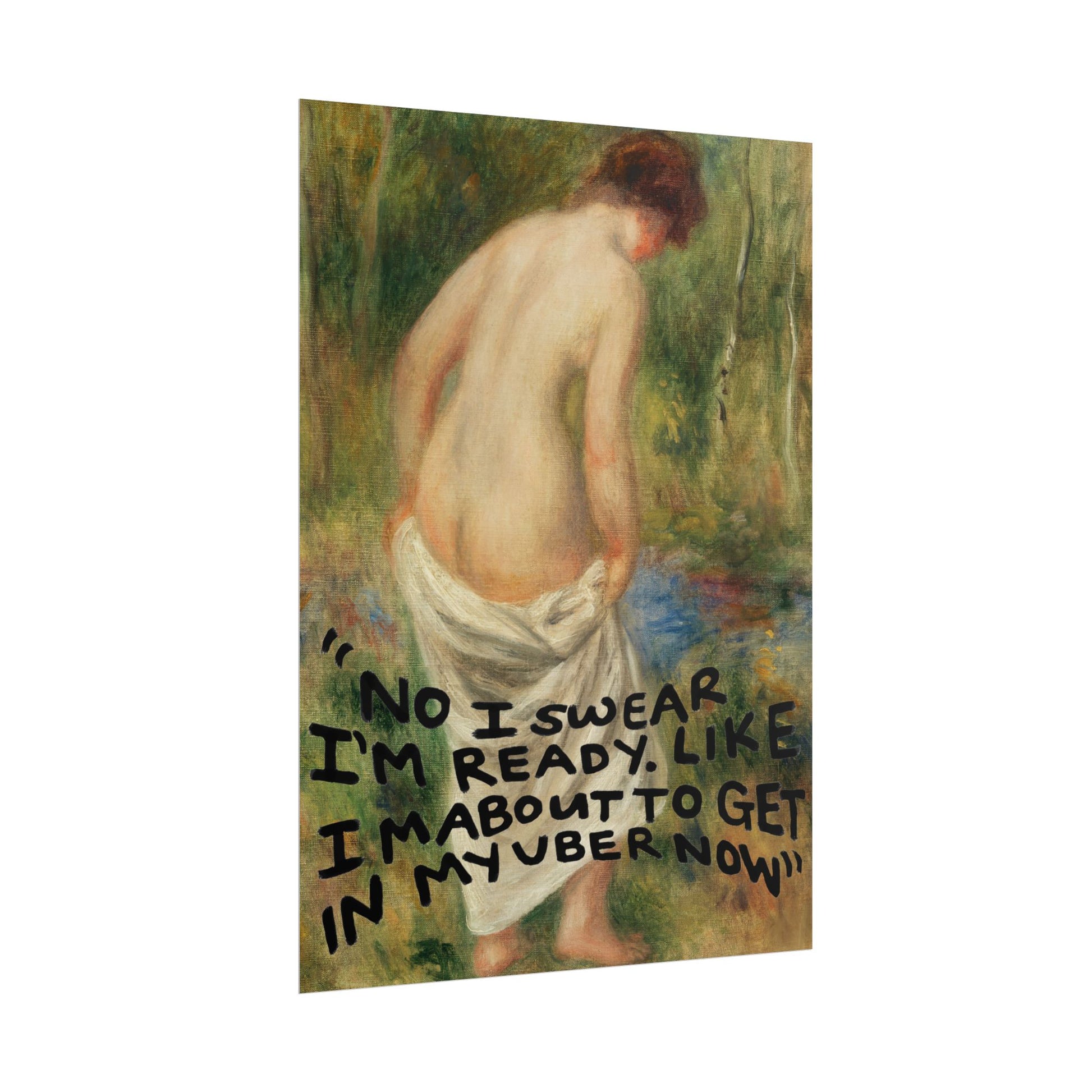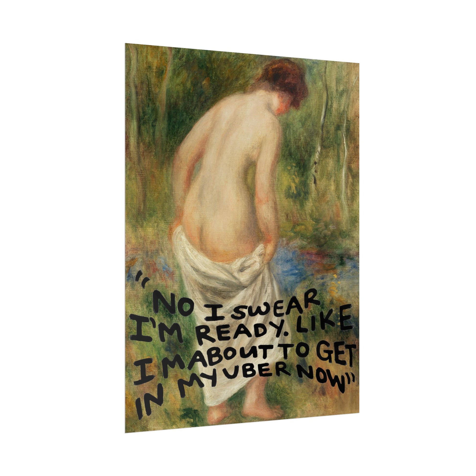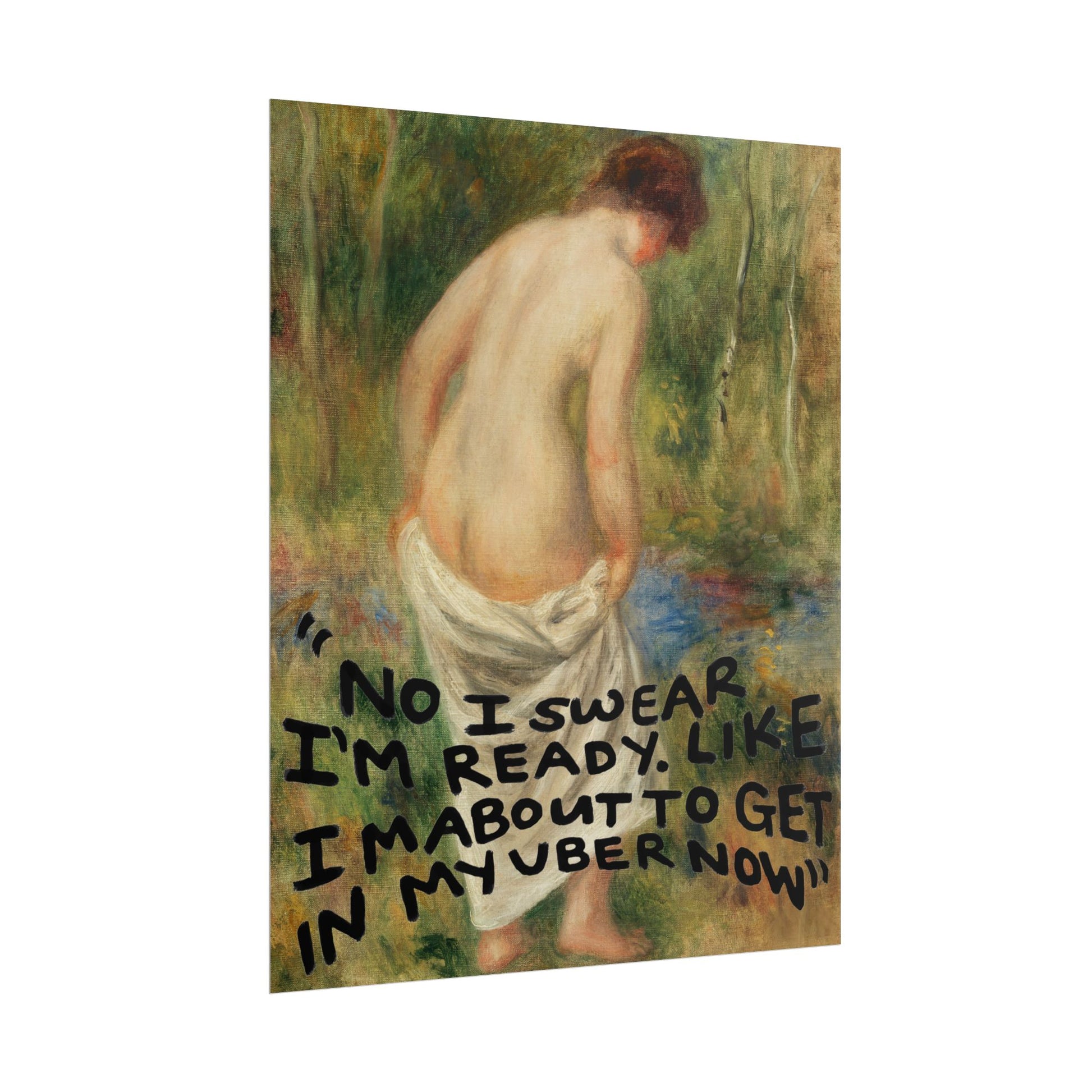 Woopsies brings together old-world charm with modern humor, overlaid on a classical painting backdrop. Perfect for chronic procrastinators and girls who are somehow always running late getting ready. Seamless addition to a gallery wall, pairing with various home décor aesthetics. Add some funny, witty energy to your space with the Woopsies poster.